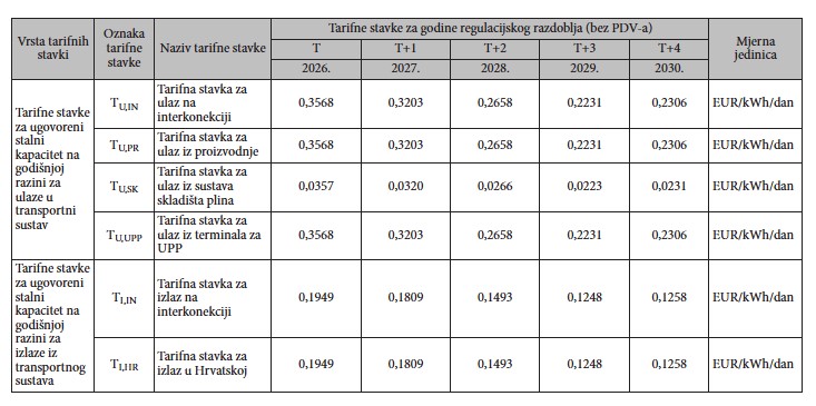 O IZNOSU TARIFNIH STAVKI ZA TRANSPORT PLINA