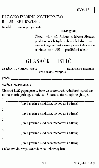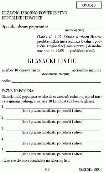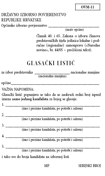 1. Pripreme i provođenje izbora za članove vijeća i predstavnike nacionalnih manjina u jedinicama lokalne i područne (regionalne) samouprave obavljat će se isključivo na obrascima propisanim ovim Obvezatnim uputama. Obrasci su namijenjeni za izbore članova vijeća i predstavnika nacionalnih manjina u općinama, gradovima i županijama odnosno Gradu Zagrebu.