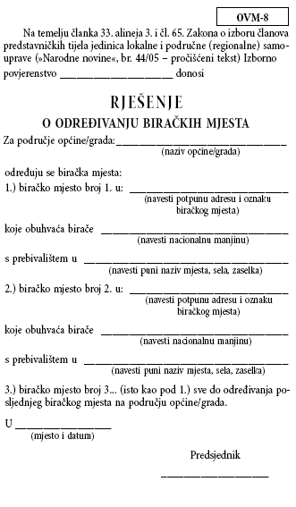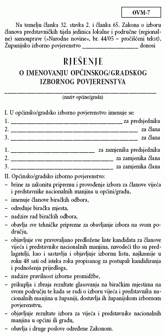 Obvezatne upute broj OVM VII – Obrasci za postupak izbora