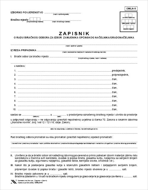 O OBRASCIMA ZA PROVEDBU IZBORA ZA ZAMJENIKE OPĆINSKIH NAČELNIKA, GRADONAČELNIKA I ŽUPANA IZ REDA PRIPADNIKA NACIONALNIH MANJINA ODNOSNO IZ REDA PRIPADNIKA HRVATSKOG NARODA
